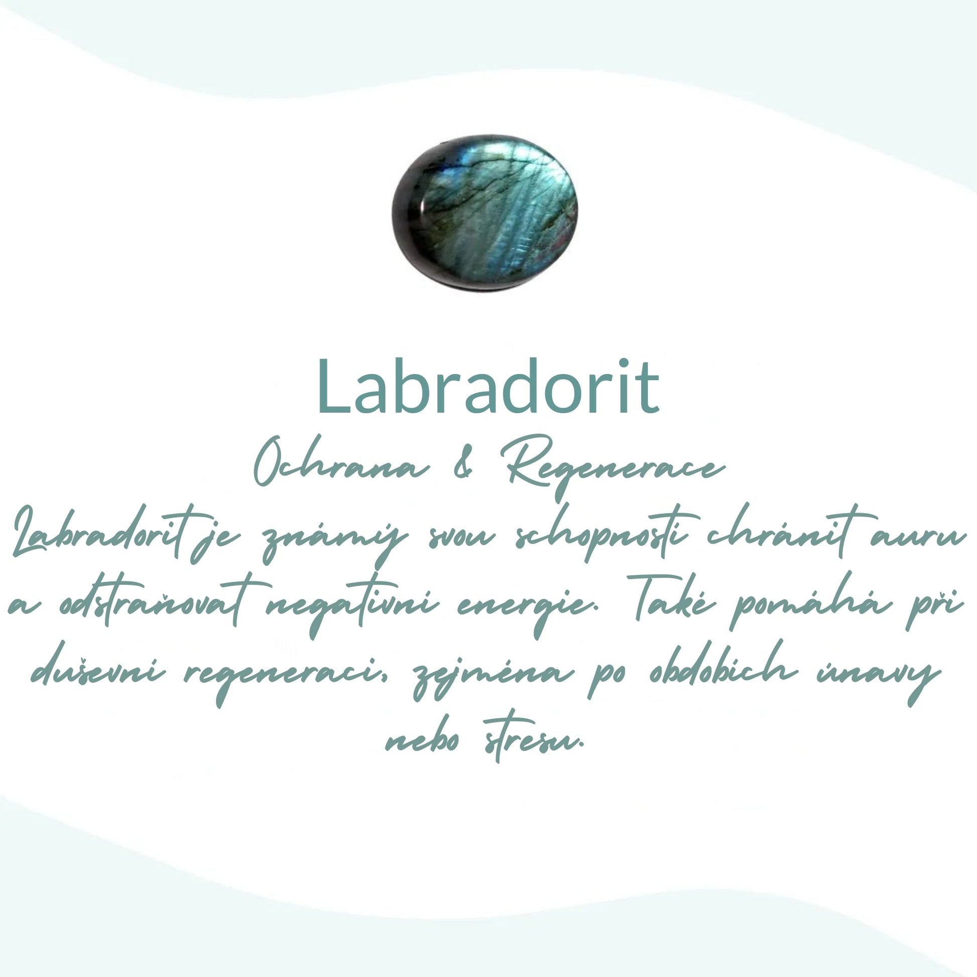 Působí jako štít, absorbuje bolesti, smutky a další negativní energie, rozpouští je a chrání vás. Labradorit uklidňuje hyperaktivní mysl a stimuluje představivost.